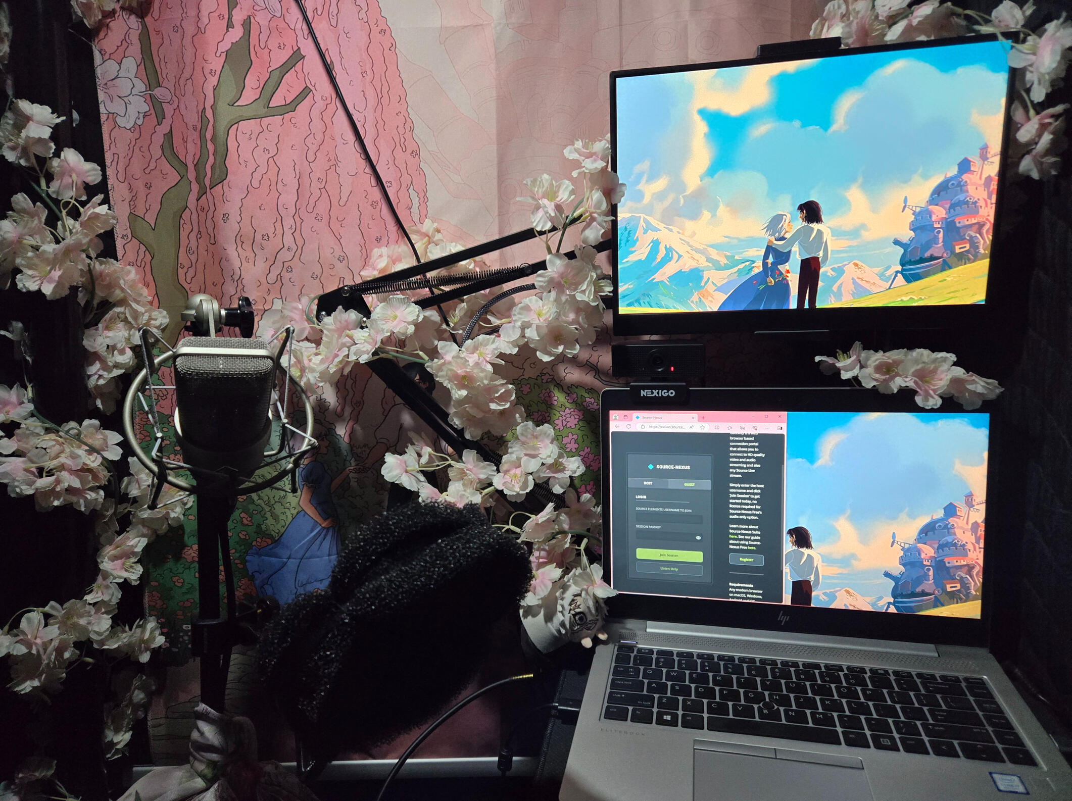 Due to my dual monitors and fast internet, I'm fully equipped to offer remote ADR services. I have been trained in ADR/remote dubbing. My interface is also within easy reach!